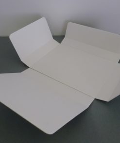 For especially permanent archiving solutions, we offer top-quality archival corrugated cardboard. The material can be easily embossed and folded so that it can be easily folded into archive or portfolio boxes according to the client’s requirements. The archival corrugated cardboard has an outer surface of gray paper, while the inner surface and the corrugated part are naturally white. The refined exterior repels dust, is dry, hard to get dirty and can be wiped clean. None of the raw materials used have a harmful effect on stored works of art such as photographs, prints, etc. The cardboard is acid-free, corresponds to the highest durability class and current DIN, PAT and ISO standards.