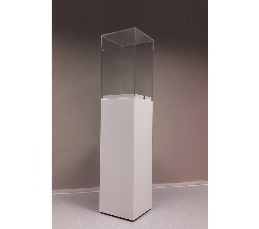Ova decentna samostojeća vitrina odgovara svim zahtjevima preventivne konzervacije. Postolje je izrađeno od MDF-a, gornji dio od MDF-a bez formaldehida. Zvono je od ultraprozirnoga laminiranoga stakla UV lijepljenoga pod kutom od 90°.