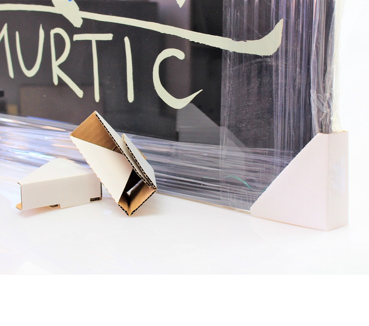 Kartonska zaštita za kutove slika ekonomično je i jednostavno sredstvo za zaštitu slika ili drugih vrijednih predmeta pravokutnoga oblika prilikom njihova privremenog pohranjivanja ili prijevoza.